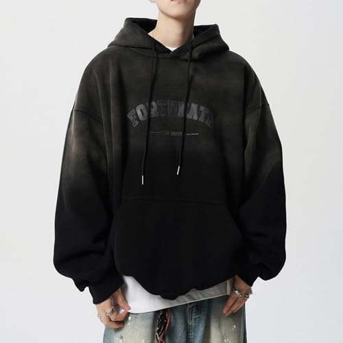 Men's Casual Pullover Gradient Hooded Hoodie Streetwear Sweatshirt Vintage Printed Tops Fall Winter 2