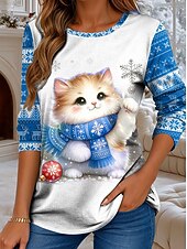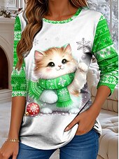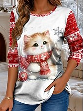 More information about Christmas Women's T Shirt Graphic Cat Christmas Vintage Fashion Stylish Long Sleeve Crew Neck Regular Tops Daily Weekend Print Pink Red Blue Green Fall Winter