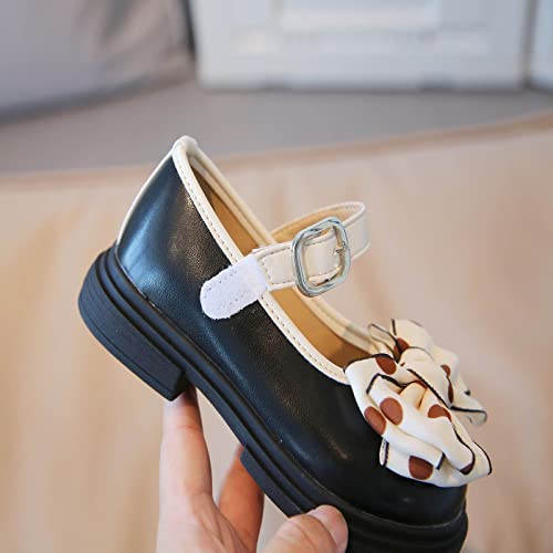 Fashion Autumn Girls Casual Shoes Thick Sole Round Toe Polka Dot Bow Buckle Dress Shoes Leather Boots for Kids Girls 6