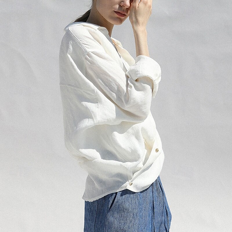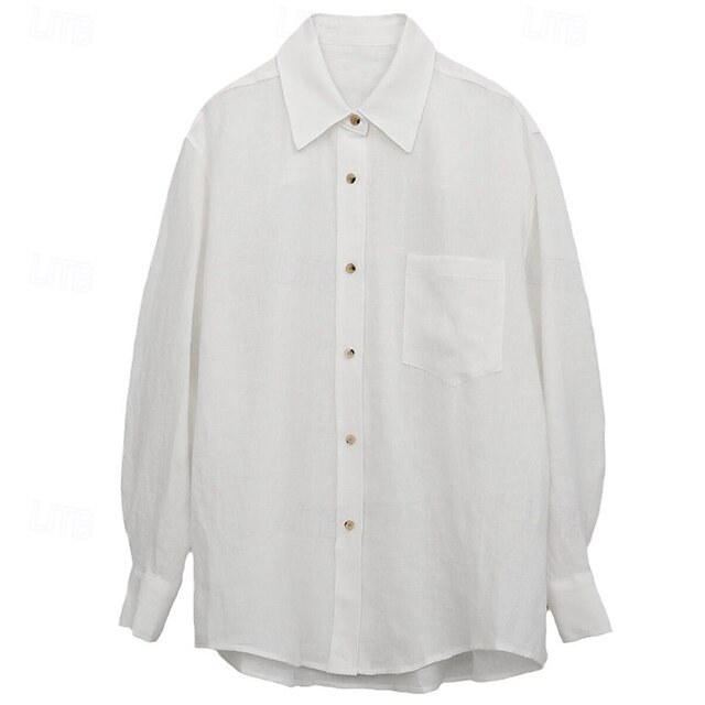 More information about Women's 100% Linen Shirt Solid Color Elegant Vintage Daily Long Sleeve Shirt Collar Regular Tops Work Daily Holiday Big white Summer Spring Fall