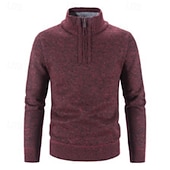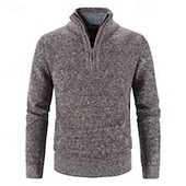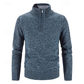 More information about Men's Sweater Pullover Sweater Jumper Quarter Zip Pullover Sweater Ribbed Knit Regular Tops Knitted Slim Fit Plain Standing Collar Knitwear Contemporary Casual Daily Wear Clothing Apparel Fall