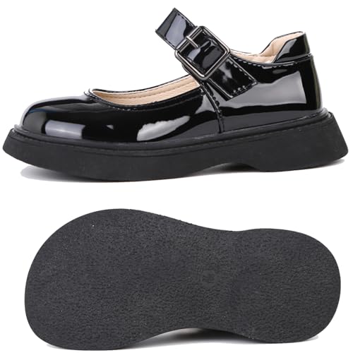 Girls Black School Uniform Dress Mary Jane Shoes Ballet Flats for Wedding Party Gift Church 6