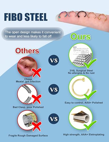 More information about FIBO STEEL 18G-22G 5PCS Stainless Steel Body Jewelry Piercing Nose Ring Hoop for Women