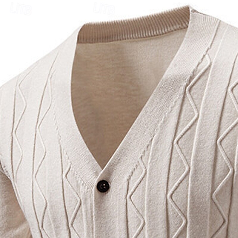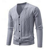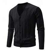 More information about Men's Sweater Cardigan Sweater Ribbed Cable Knit Regular Tops Knitted Geometric V Neck Elegant Vacation Casual Daily Wear Clothing Apparel Spring & Fall Black Navy Blue L XL 2XL