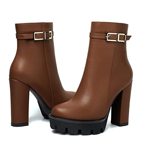 HOT ! WAYDERNS Womens Party Platform Zip Solid Round Toe All Weather Matte Block High Heel Ankle High Boots 4.7 Inch