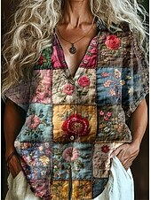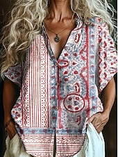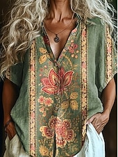 More information about Women's Shirt Long Sleeve Button Down Blouse Floral Graphic Bohemia Vintage Tropical Short Sleeve Shirt Collar Regular Tops Daily Pink Red Light Brown Orange Green Summer Spring