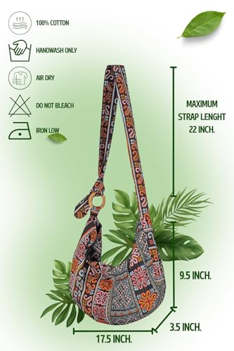 More information about Hobo Crossbody Bag for Women – Handmade Cotton Boho Purse with Wooden Ring | Lightweight Slouchy Shoulder Sling Tote Bag