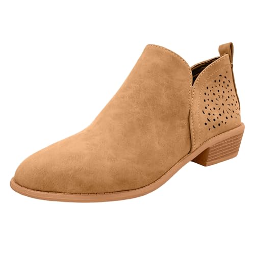 HOT ! Ankle Boots for Women Low Heel,Casual Cut Out Slip On Short Boot Chunky Stacked Heel Perforated Side V Cut Western Booties Cutout Breathable Casual Shoes for Women