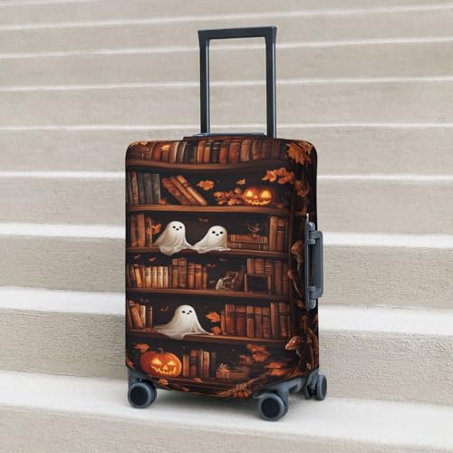 HOT ! Halloween Bookshelf Vintage Books Ghost Elastic Travel Luggage Covers Dustproof Scratch-Resistant Suitcase Protector Fit 22-24 Inch