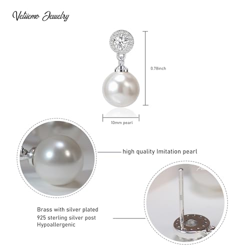 • Pearl Dangle Earrings Size:Length 2cm/0.78inch,10MM shell pearl,1MM cubic zirconia crystal.
