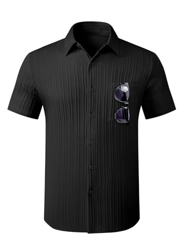 HOT ! JMIERR Hawaiian Shirt for Men Button Down Short Sleeve Shirts Textured Casual Summer Beach Linen Shirts
