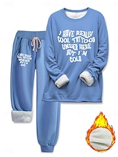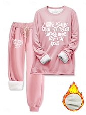 More information about Women's Elegant Warm Fashion Two Piece Sets Tracksuit Pants Sets Long Sleeve Bishop Sleeve Crew Neck Round Neck Graphic Letter Print Outdoor Vacation Daily Black Pink Dark Pink Spring Loose Fit