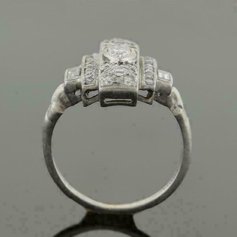 • Vintage 1920s Style Engagement Ring Marquise Baguette Cut Moissanite Diamond Ring Antique Inspired Wedding Ring For Woman Gift For Her 925 Sterling Silver Handcrafted Edwardian Ring