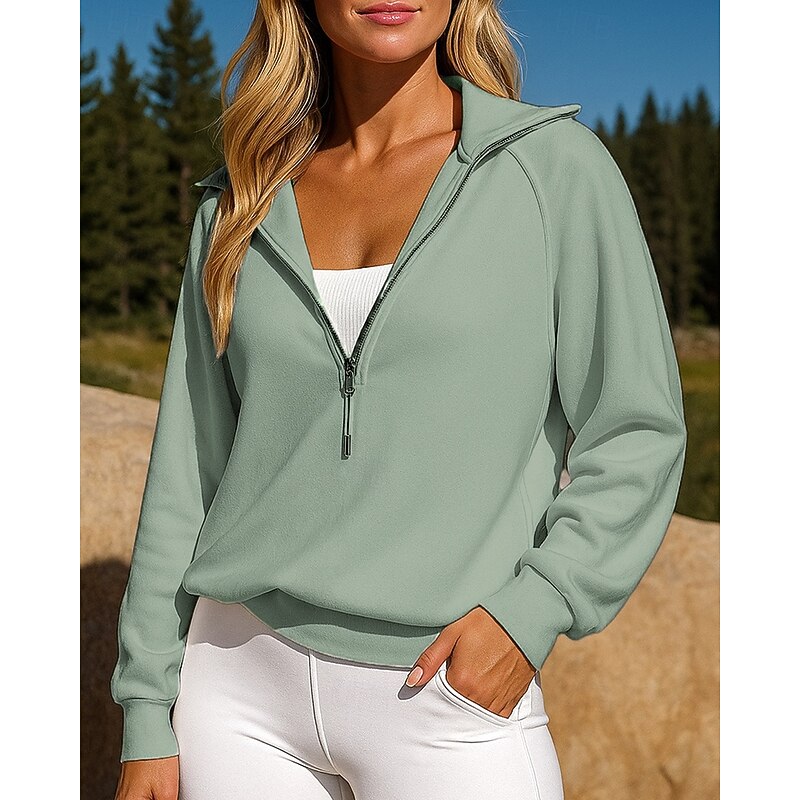 Women's Pullover Sweatshirt Casual Outfits Half Zip Long Sleeve Top Athleisure Fall Solid Colored Breathable Workout Outdoor Training Sportswear Activewear Black White Pink 15