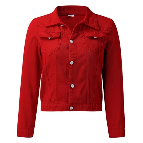 HOT ! Jean Jacket Women Cropped Oversized Lightweight Denim Shacket Long Sleeve Button Down Chambray Shirt Trucker Coats