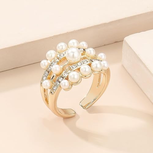 HOT ! HUASAI Pearl Rings for Women Adjustable Open Pearls Finger Ring Stretch Stackable Rings Wedding Ring Accessories Jewelry Gifts Stocking Stuffers
