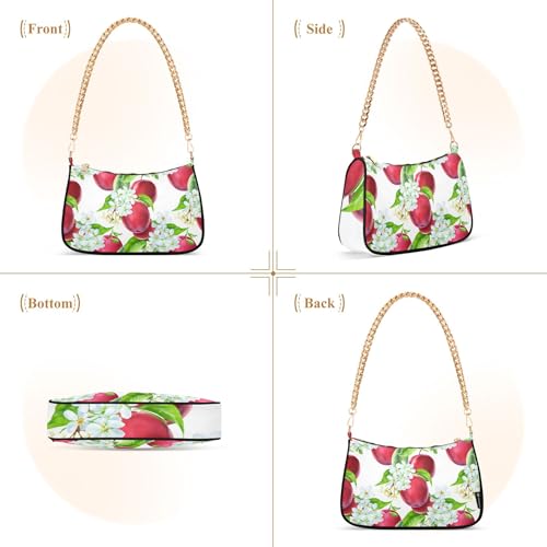 Red Plums Fruits White Floral Prints Shoulder Purses for Women Hobo Evening Purse Chain Strap Zipper Designer Purses