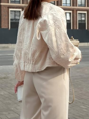 KEOMUD Women's Fall Casual Cropped Bomber Jacket,Fashion Lightweight Embroidered Jacket with Pockets 6
