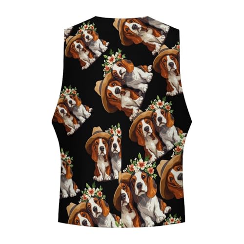 Basset Hounds Men's Suit Vests Dress Vest V-Neck Waistcoat Slim Business Formal with Pocket 1