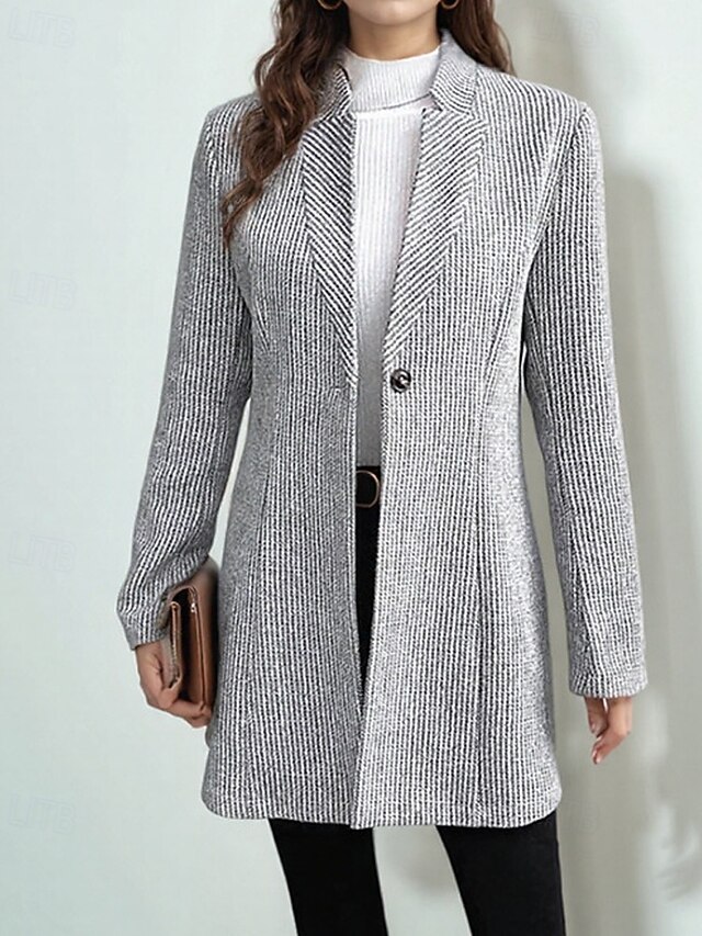 More information about Women's Blazer Warm Comfortable Pocket Buttons Fashion Outdoor Plain Going out Weekend Single Breasted Regular Lapel Regular Fit Long Sleeve Outerwear Gray Fall Winter