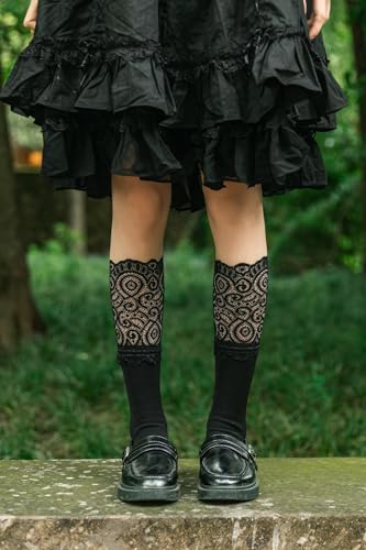 exceptional for Womens Lace Cotton Socks Transparent Mesh Ruffle Dress Calf Socks (Black, 1 Pairs Thicken)