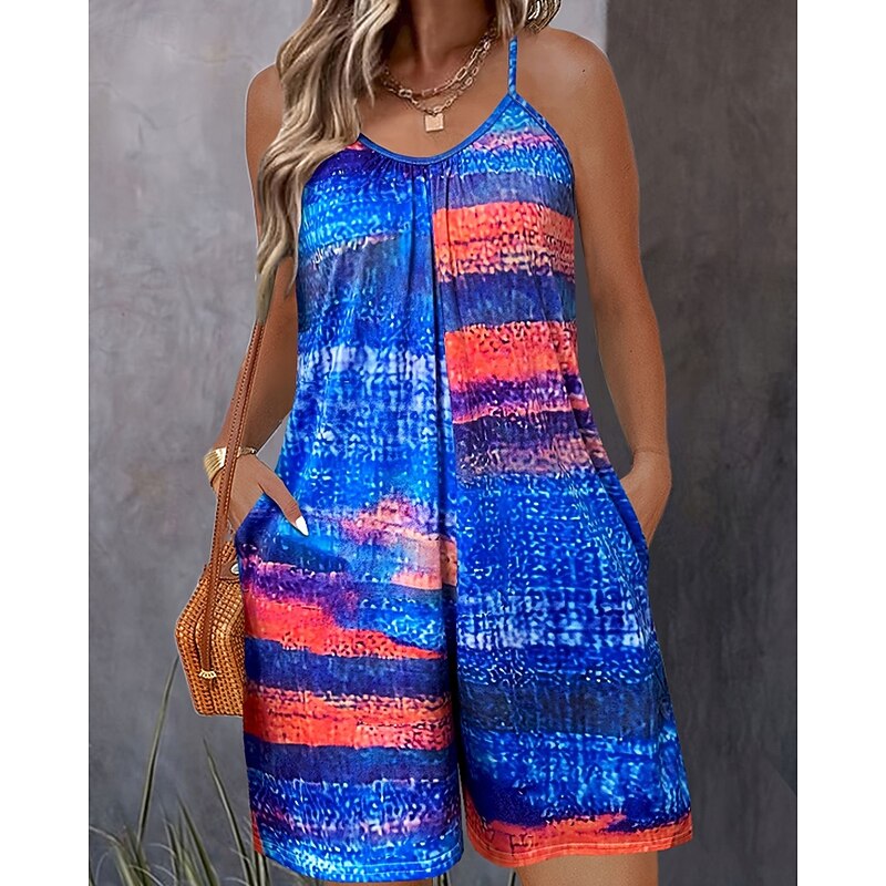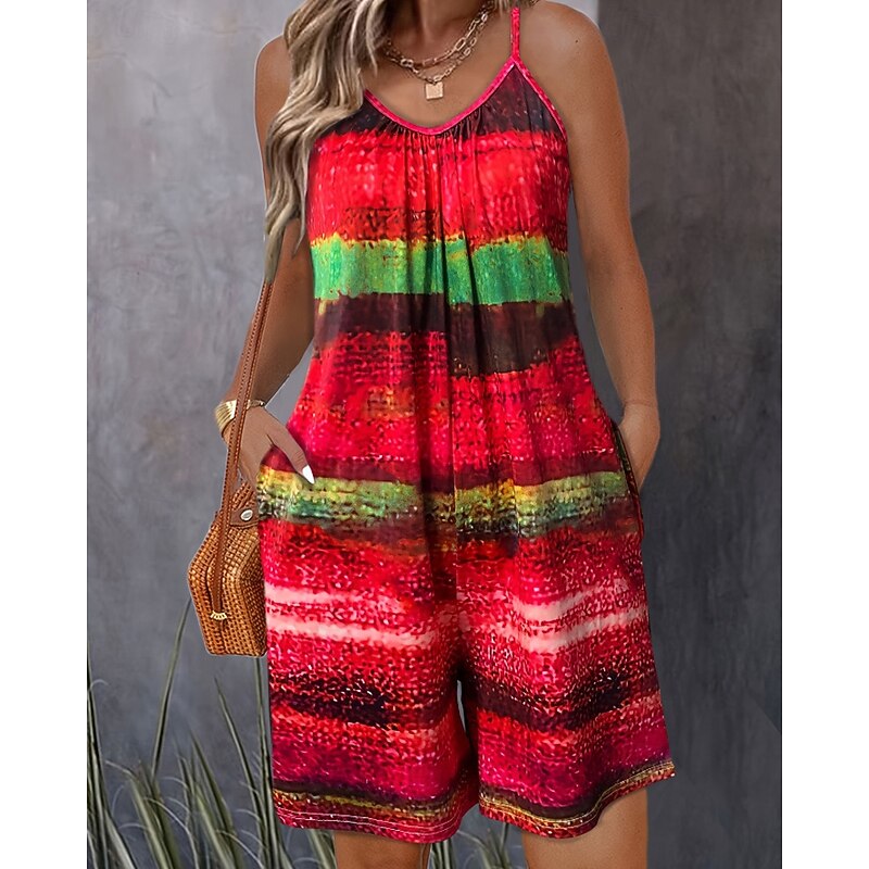 More information about Women's Normal Romper Casual Color Block Sleeveless V Neck Pocket Street Going out Regular Fit Yellow Red Navy Blue Summer