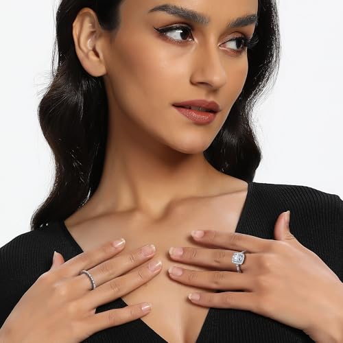 MDFUN Two-in-One Rectangle Cut Halo Engagement Rings Promise Ring Wedding Bands Set 18K White Gold Plated Rectangle Cubic Zirconia Eternity Band for Women Size 5-10