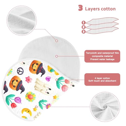 Muslin Burp Cloth for Baby 2PCS Halloween Floral Pumpkins Ghosts Super Absorbent Burping Cloths, Bibs for Newborn Boys Girls 4
