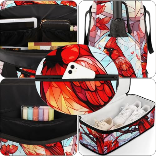 Large Weekender Overnight Bags Abstract Bird Glass Travel Duffel Bag for Women Men Gym Bag With Shoe Compartment Foldie Travel Tote Bag Carry On Personal Item Bag for Travel Gym Sports 6