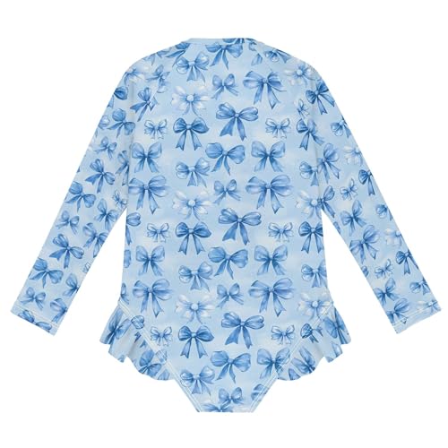 Blue Bows Girls Long Sleeve Rashguard Swimsuit UV Protection One-Piece Swimwear Bathing Suit B0404873 1