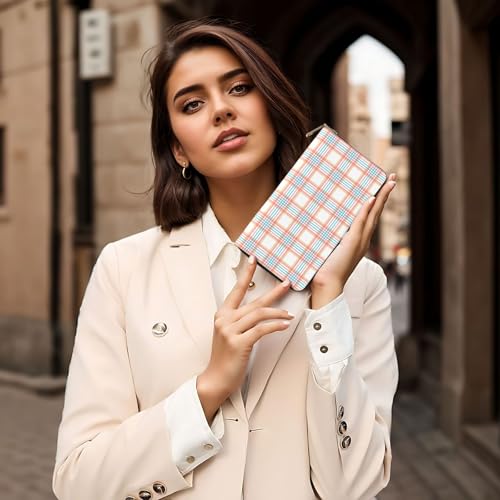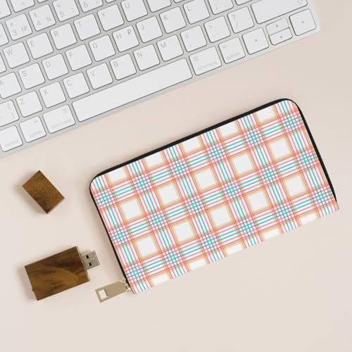 Retro Plaid Print Wallet Women Men, Long PU Leather Wallets for Women, Cute Womens Travel Wallet Purse Pouch with Zipper Pocket 6