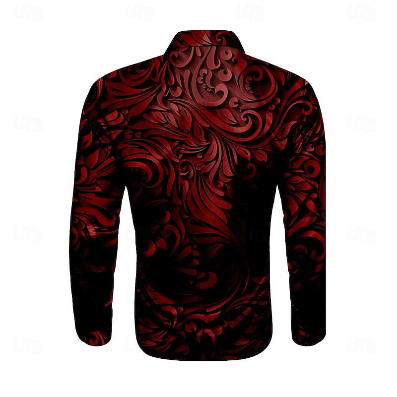 More information about Men's Shirt Satin Shirt Dress Shirt Button Up Shirt Floral Party Evening Wear Red Blue Gold Gray Long Sleeve Turndown Summer Spring Clothing Apparel Button Up