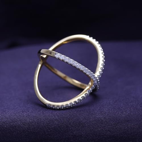 AFFY Round Shape White Cubic Zirconia Criss Cross X Ring in 14k Gold Over Sterling Silver 5
