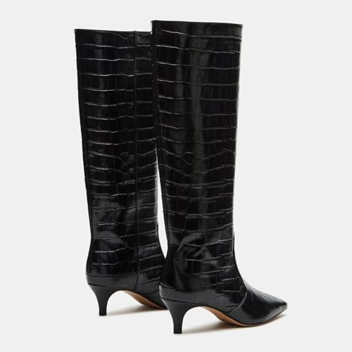Yishaweiqi Stone Pattern Knee High Boots for Women Kitten Heel Square Toe Fashion Fall Boots Calf High Boots Tall Boots Long Boots 6