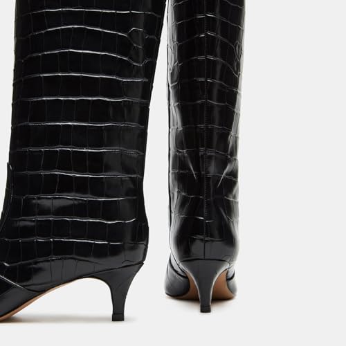 Yishaweiqi Stone Pattern Knee High Boots for Women Kitten Heel Square Toe Fashion Fall Boots Calf High Boots Tall Boots Long Boots 5