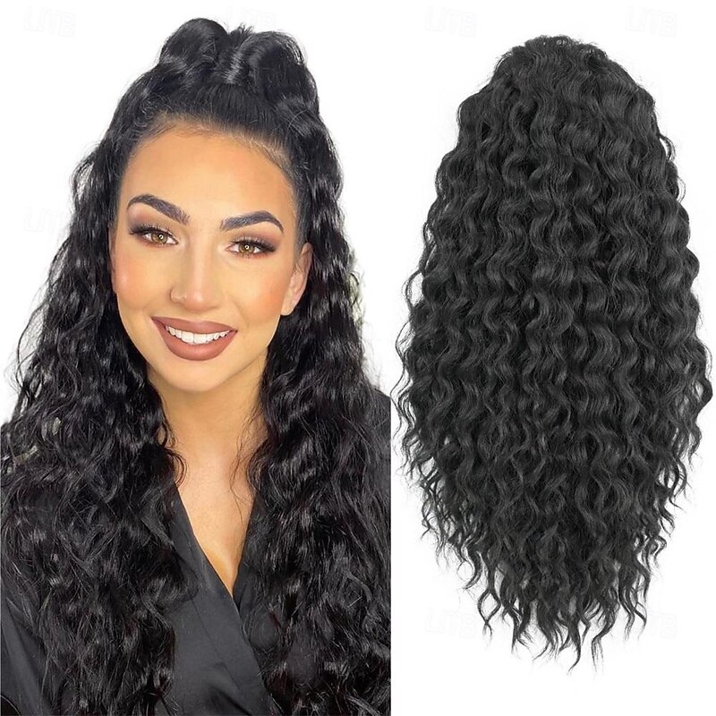HOT ! Ponytail Extension Yaki Texture Curly Drawstring Ponytail for Black Women 20 Inch Long Wavy Curly Clip in Ponytails Fake Pony Tails Hair Extensions Synthetic Hairpieces