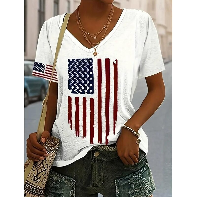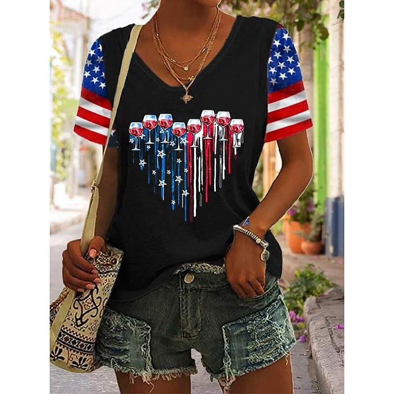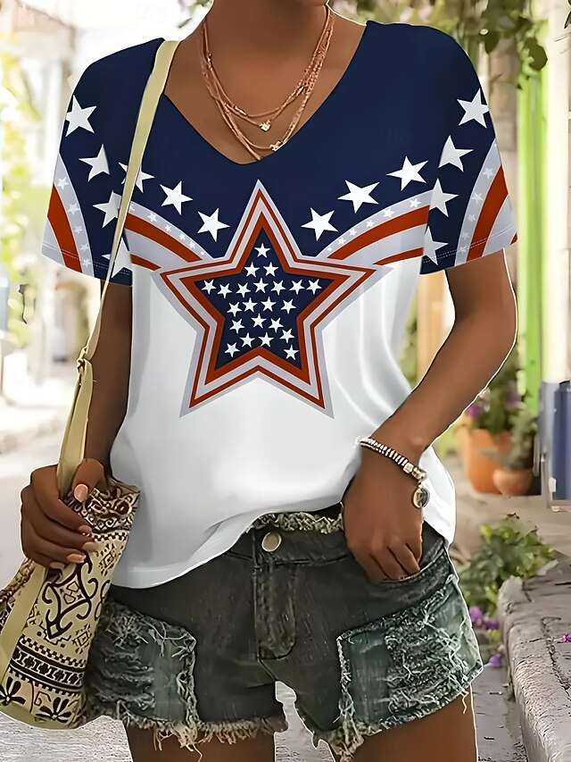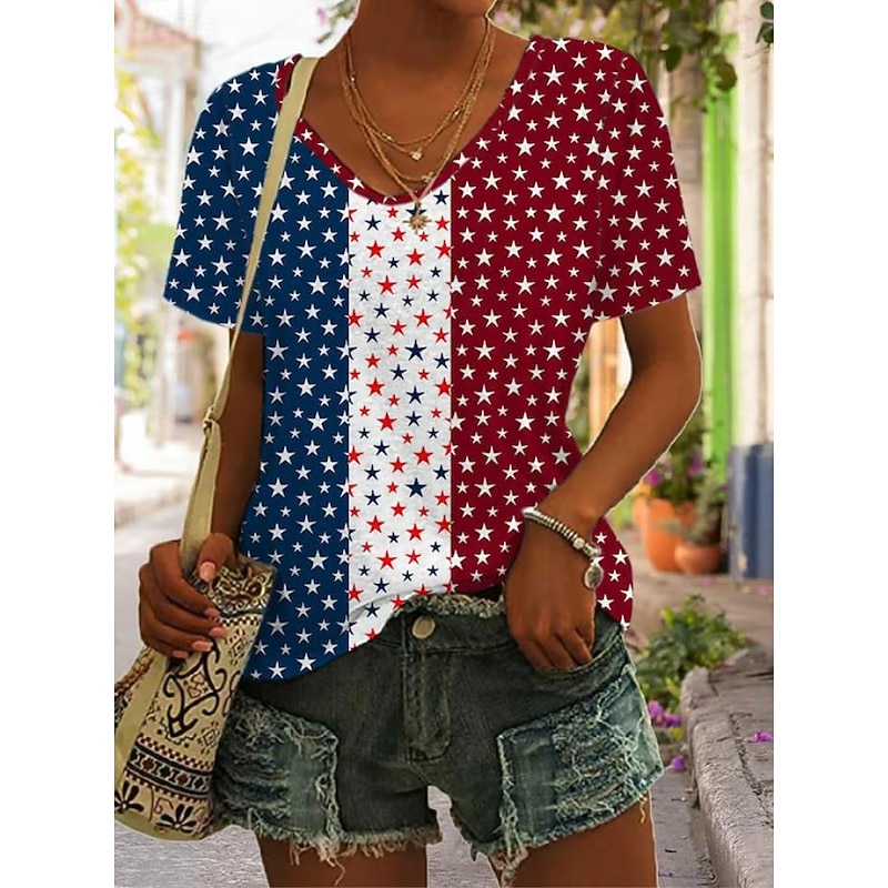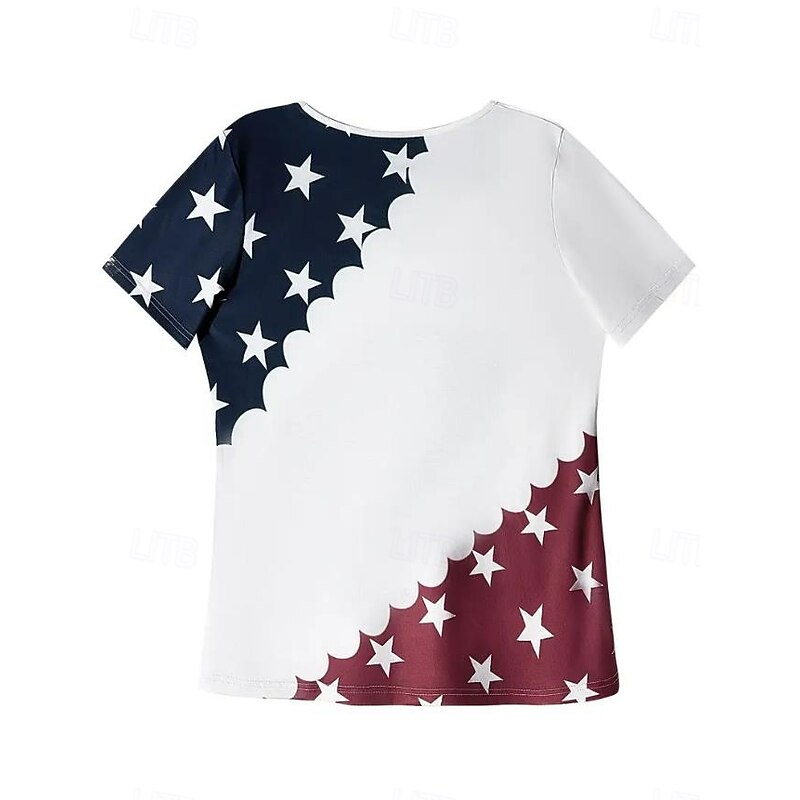 More information about Women's Patriotic T Shirt Flag American Flag National Flag Casual Red White And Blue Short Sleeve Round Neck Regular Tops Daily Print Blue Summer