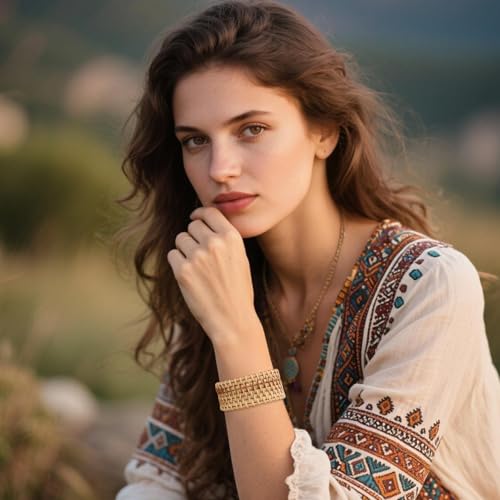 • Stylish Design: This cuff bracelet for women is full of Bohemian style, exquisite workmanship, can easily match your clothes, creating a vintage-inspired look that adds a touch of sophistication to any outfit.