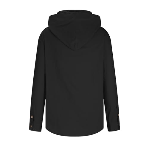 Men's 2025 Fashion Hoodie Button Down Shirts Casual Solid Color Cotton Linen Long Sleeve Hooded Cardigan Shirt 4