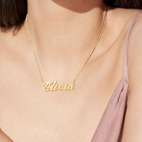 CoolJewelry Custom Name Necklace for Women Personalized Name Necklaces with Heart 18K Gold Plated or Sterling Silver Nameplate Customized Pendant Jewelry Gift 1