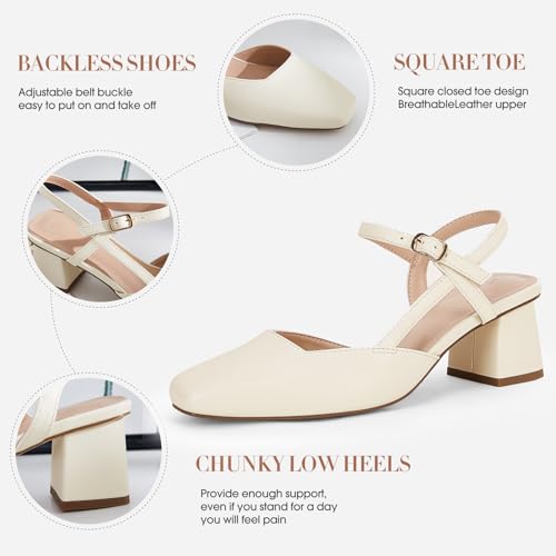 Rilista Women's Slingback Chunky Low Heels Closed Square Toe Heel Wedding Party Dress Pumps Shoes Beige 4