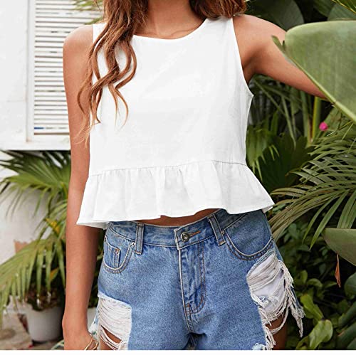 HOT ! Women's Cute Summer Tops Ruffle Flared Hem Casual Crop Top Blouse Sleeveless Shirts Teen Girls Trendy Y2K Tank Tops