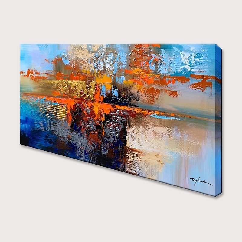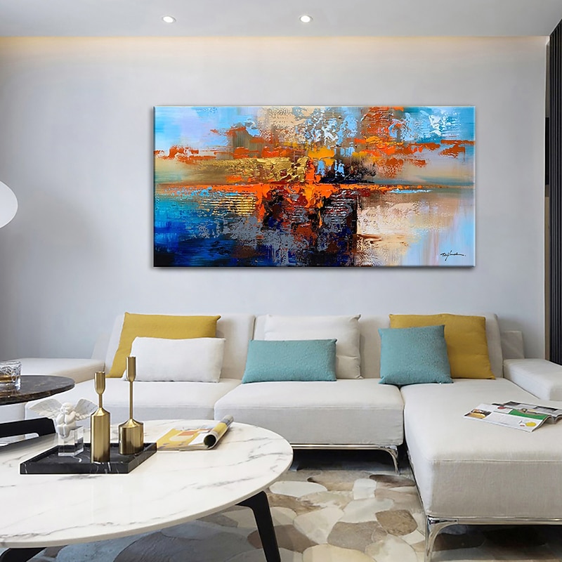 More information about Oil Painting 100% Handmade Hand Painted Wall Art On Canvas Orange Blue Horizontal Abstract Modern Home Decoration Decor Rolled Canvas No Frame Unstretched