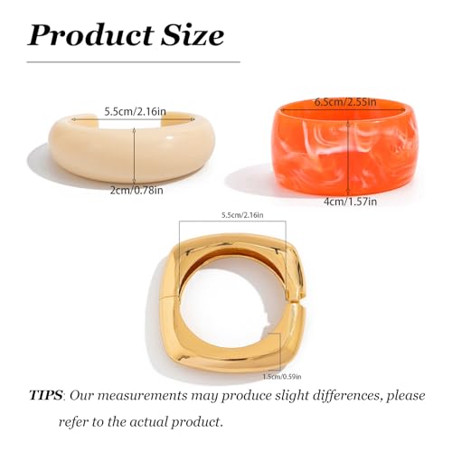 • IRREGULAR RESIN BRACELET FOR S: This colorful acrylic bangle bracelet has an inner diameter of 2.5 inches and a width of 0.8 inches. It fits most women's wrists and is easy to wear and take off.