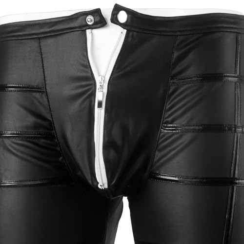 Men's Faux Leather Pants Slim Fit Casual Trousers for Party Nightclub Motorcycle Riding Punk Rock Fashion Stylish 6