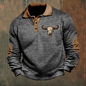 More information about Men's Cowboy Skulls Polo Shirts Pullover Long Sleeve Polo Shirts Collar Vintage Casual Outdoor Streetwear 3D Print Buttons Fall & Winter Black