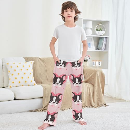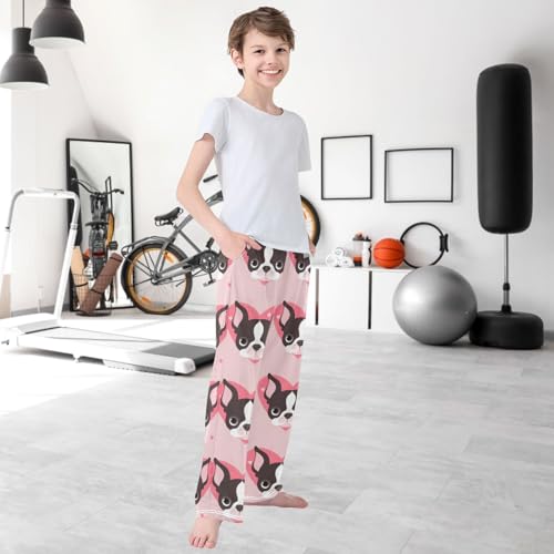 Boy's Pants Pink Bulldog Valentines Day Jogger Pants Elastic Waist Long Bottoms Trousers with Pockets 6-14 Years