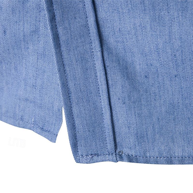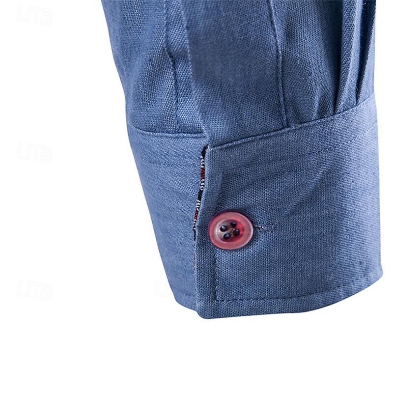 More information about Men's Shirt Linen Shirt Cotton Linen Shirt Summer Shirt Beach Shirt Button Up Shirt Plain Hawaiian Holiday Blue Dark Blue Long Sleeve Lapel Spring & Fall Clothing Apparel Splice