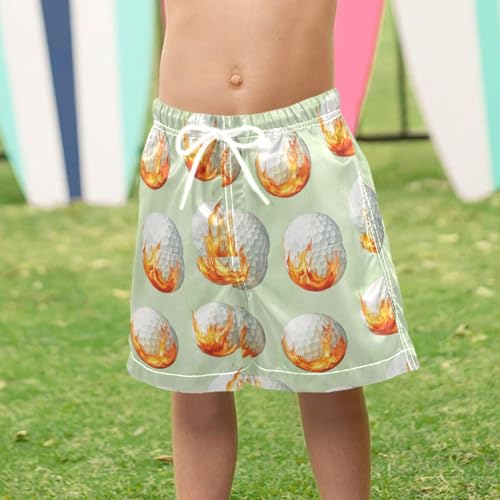 Pigsaly Boys' Swim Board Shorts Green Watercolor Fire White Golf Balls Boy's Swim Trunks Kids Swimwear 5T 6