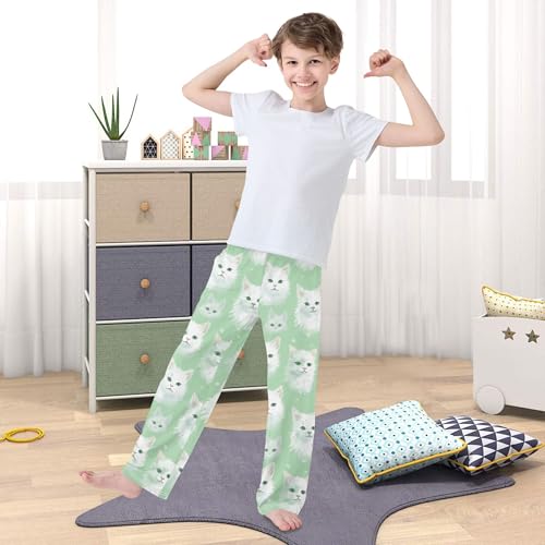 Cute Cat Long Pajama Pants Elastic Waist PJ Bottoms with Pockets S A112172